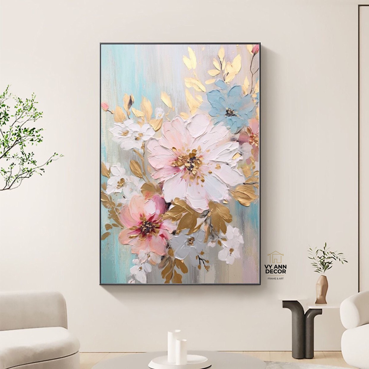 Tranh Sơn Dầu Hoa Nghệ Thuật Gam Hồng Xanh Pastel Decor (VA01)