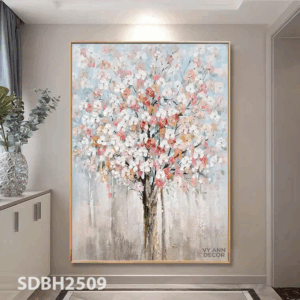 Tranh Sơn Dầu Hoa Nghệ Thuật Gam Hồng Xanh Pastel Decor (VA01)